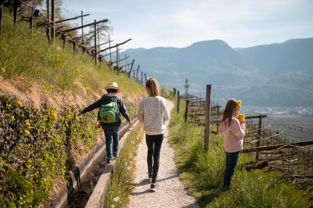 Zwischen plätscherndem Wasser, Apfelwiesen und weitem Blick über das Etschtal wird Spazierengehen zum kleinen Urlaubsritual für die ganze Familie.