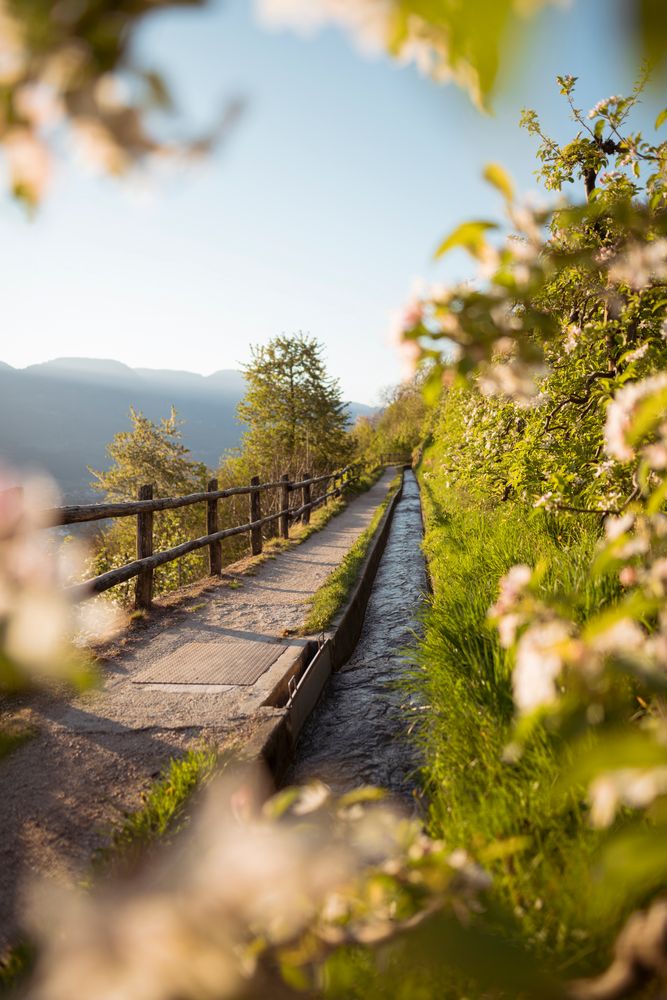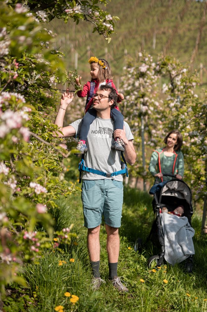 Zwischen plätscherndem Wasser, Apfelwiesen und weitem Blick über das Etschtal wird Spazierengehen zum kleinen Urlaubsritual für die ganze Familie.